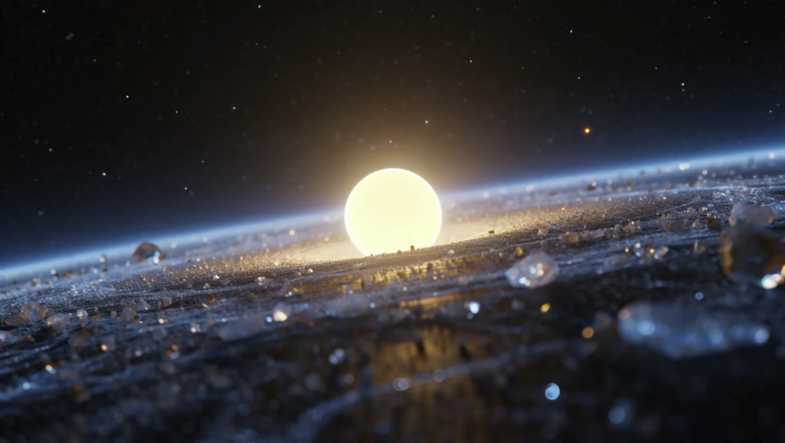 Как же ученым удалось «разглядеть» лед на таком расстоянии? Они анализировали свет, отраженный от диска HD 181327. Разные вещества поглощают и отражают свет на разных длинах волн, оставляя своего рода «отпечатки пальцев» в спектре. Команда под руководством Чэнь Се из JHU заметила характерный «провал» в спектре между 2,7 и 3,4 микрометрами — именно так ведет себя водяной лёд. Но это еще не всё! Они также обнаружили узкий, но яркий пик на длине волны 3,1 микрометра. Это так называемый пик Френеля, и он — верный признак присутствия крупных (более миллиметра) частиц кристаллического водяного льда. Подобное уже видели в спектрах колец Сатурна и объектов пояса Койпера. Так что сомнений почти не осталось — перед нами настоящий ледяной склад!
