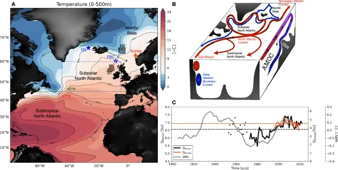 На фоне тревожных новостей о возможном коллапсе АМОЦ выводы шведских исследователей звучат неожиданно обнадёживающе. Анализ данных показал, что северная ветвь циркуляции в Скандинавских морях на данный момент остаётся стабильной. Никаких признаков долгосрочного ослабления, которого так опасаются климатологи, пока не наблюдается.