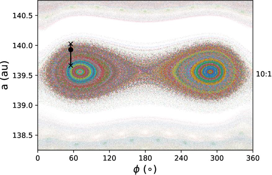 2020 VN40 эту логику игнорирует. Он достигает своего перигелия именно тогда, когда Нептун тоже находится вблизи Солнца. На первый взгляд, это рецепт для катастрофы. Как же они не сталкиваются?