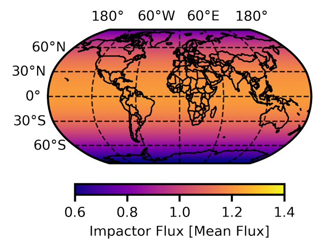 Межзвездные объекты имеют тенденцию ударять по низким широтам, близко к экватору.