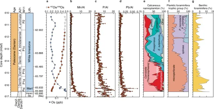 И вот тут начинается самое захватывающее. Учёные не просто измерили осмий. Они посмотрели, какие микроскопические ископаемые организмы (в основном, планктон) содержатся в тех же самых слоях керна. Картина получилась удивительная: пока гидротермальная система активно «фонтанировала» осмием (а значит, и другими питательными веществами), в океане над кратером процветали виды планктона, типичные для очень богатых питательными веществами вод. Настоящий подводный пир!