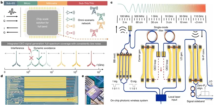 Чип интегрирует функции широкополосного преобразования беспроводного сигнала в оптический, настраиваемую генерацию несущей частоты и цифровую модуляцию основной полосы частот. В основе технологии лежит платформа фотонных материалов из тонкопленочного литий-ниобата.