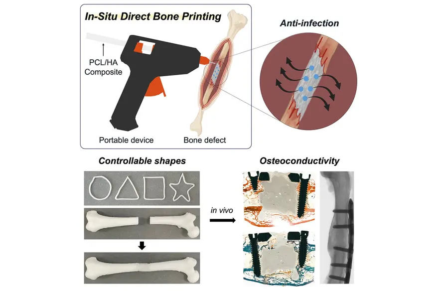 Корейские и американские исследователи создали портативное устройство на основе клеевого пистолета, способное печатать биоразлагаемые костные трансплантаты непосредственно на местах переломов во время хирургических операций. Разработка представлена группой учёных под руководством доцента Чон Сын Ли из Университета Сонгюнгван (SKKU).