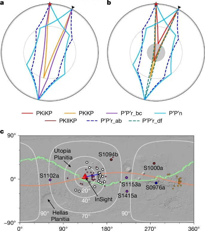 Именно для этой цели на Марс в 2018 году был отправлен аппарат NASA InSight. Его сверхчувствительный сейсмометр SEIS был нашим «ухом», приложенным к марсианской поверхности. За годы своей работы, прежде чем его солнечные панели покрылись пылью в 2022 году, InSight зафиксировал более 1300 толчков. И учёным под руководством Даоюаня Суня из Научно-технического университета Китая удалось их расшифровать.