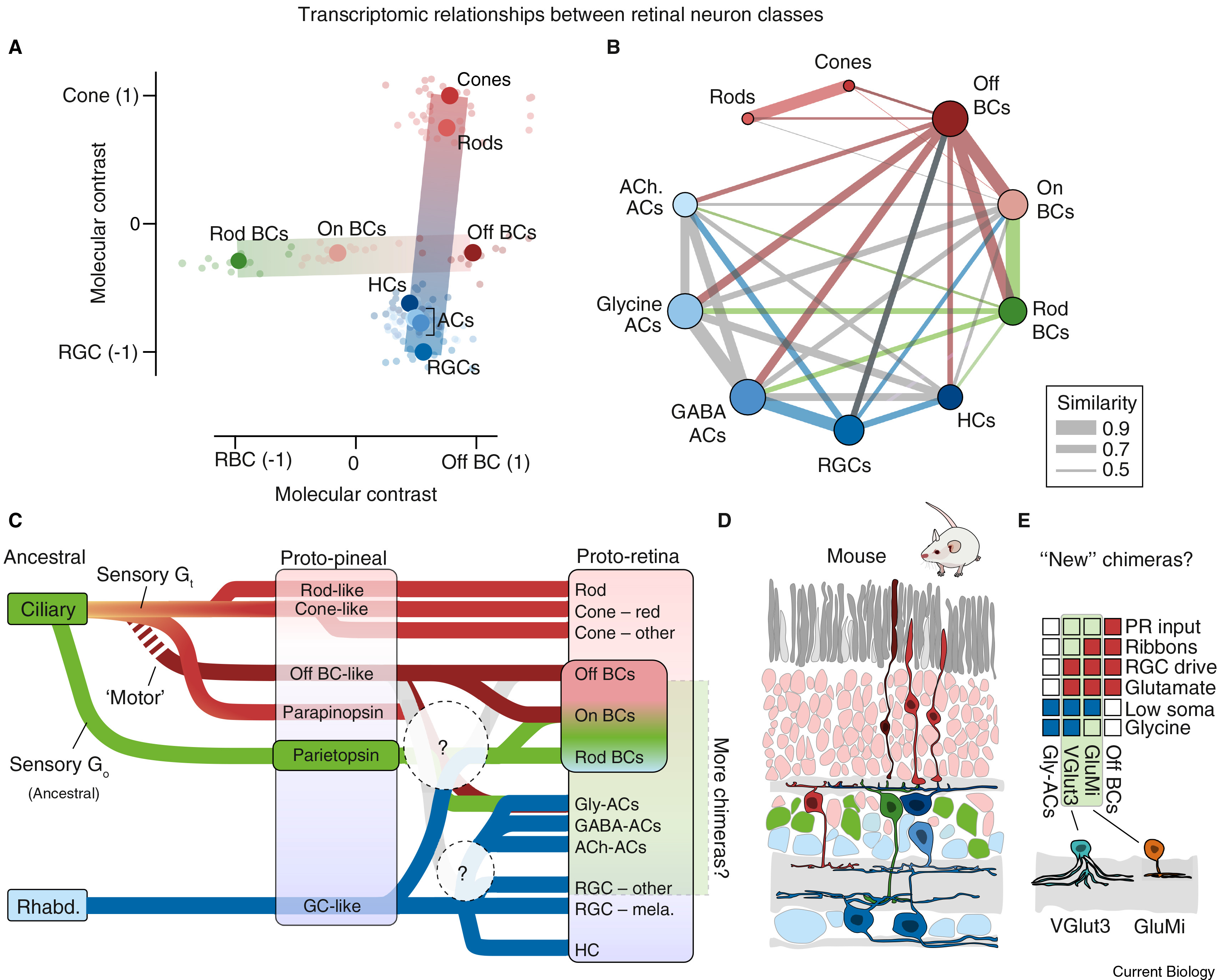 Молекулярный и транскриптомный анализ, проведенный исследователями, показал, что биполярные клетки сетчатки не возникли как единый класс нейронов. Они имеют два независимых эволюционных происхождения, что напрямую указывает на процесс интеграции различных древних систем:
