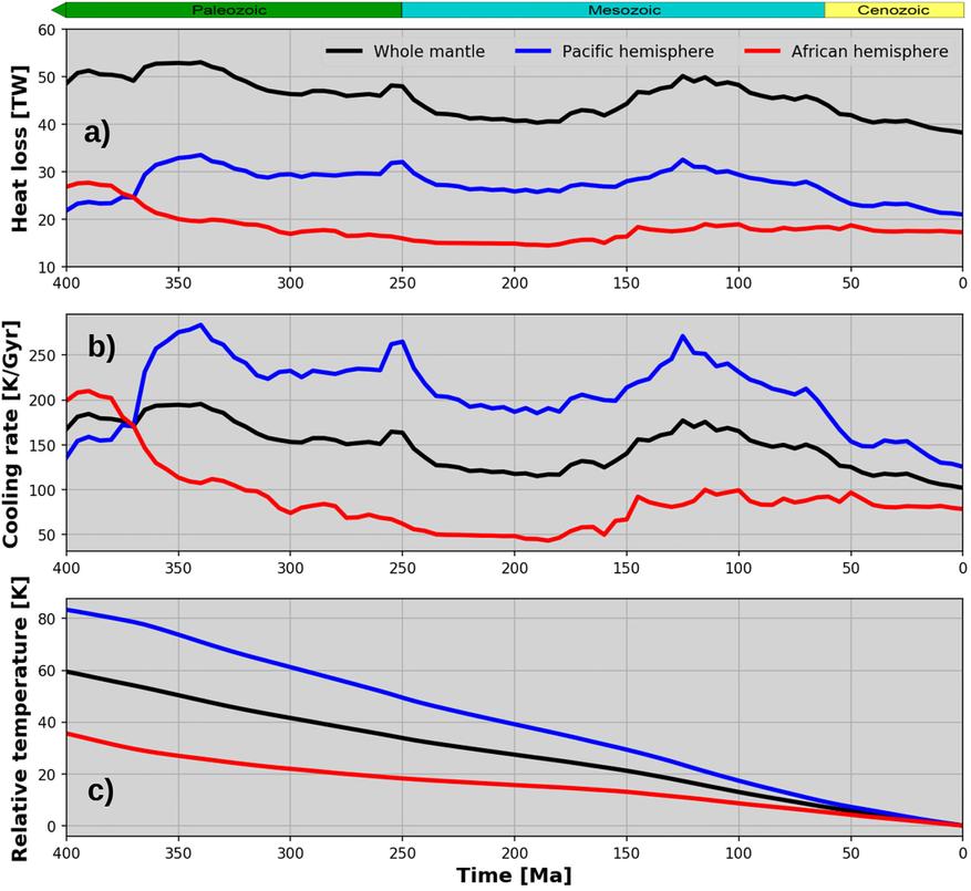 Результаты оказались поразительными. За 400 миллионов лет Тихоокеанское полушарие остыло примерно на 50 Кельвинов (градусов по шкале Кельвина) сильнее, чем Африканское. Это прямое доказательство того, что география поверхности напрямую влияет на тепловую эволюцию всей планеты.