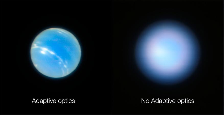 Чтобы бороться с этой проблемой, инженеры разработали технологию адаптивной оптики. Если сказать вкратце, то её принцип основан на простой идее: если атмосфера искажает свет, то можно попробовать компенсировать эти искажения прямо внутри телескопа. Для этого зеркала современных телескопов делают тонкими и гибкими. За зеркальной поверхностью располагается система миниатюрных приводов или магнитов, которые могут изменять форму зеркала с невероятной точностью. Компьютер анализирует получаемый сигнал и мгновенно корректирует кривизну зеркала, тем самым компенсируя атмосферные искажения.
