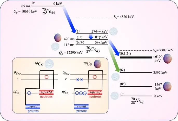 Кобальт-70 находится на границе «карты стабильности», в области экзотических, перегруженных нейтронами ядер. Понимание их поведения критически важно, поскольку именно в таких экстремальных условиях рождаются тяжёлые элементы во Вселенной, например, при слиянии нейтронных звёзд.