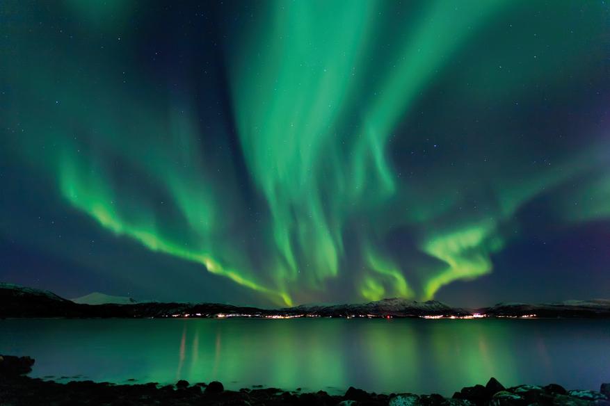 Когда такой поток достигает Земли, он сталкивается с нашей магнитосферой. Частицы устремляются вдоль линий магнитного поля к полюсам и, взаимодействуя с газами в верхних слоях атмосферы, заставляют их светиться. Так и рождается полярное сияние. Чем мощнее солнечный шторм, тем дальше к экватору можно наблюдать это явление.