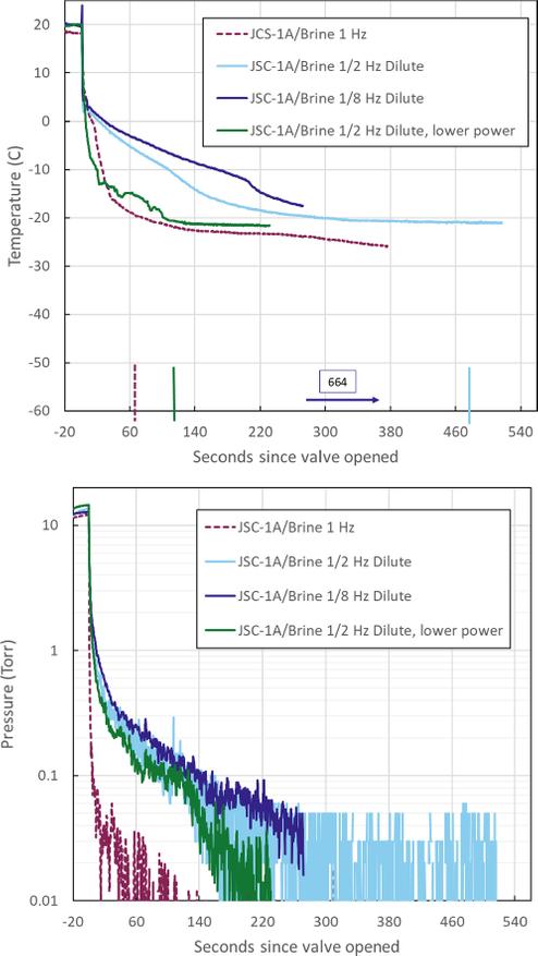 Добавление частиц, имитирующих реголит, ускоряло замерзание как воды, так и рассола. Это может быть связано с уменьшением общего объема жидкости в образце или с тем, что частицы выступают в качестве центров кристаллизации льда. Однако, в реальных условиях на Весте и Церере толщина потоков, вероятно, значительно больше, чем в лабораторных экспериментах, что может увеличить время, необходимое для полного замерзания.