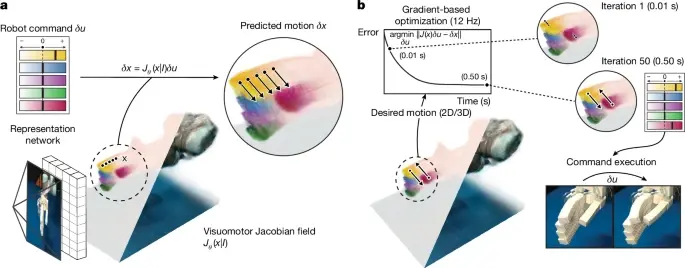 - Создание «карты чувствительности». Это и есть главное ноу-хау. Система не просто видит статичную модель, она анализирует динамику. Она сопоставляет каждую отправленную двигателю команду с тем, как изменилось положение точек на 3D-модели. По сути, она составляет подробную карту, отвечающую на вопрос: «Если я подам вот такой сигнал на этот мотор, какая часть моего тела и как именно сдвинется?». Эта карта и называется в математике якобианом, отсюда и название технологии.