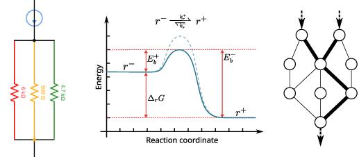 Для анализа поведения таких систем в режиме, близком к термодинамическому равновесию (линейный режим), авторы использовали строгую математическую аналогию с электрическими цепями. Это позволяет применить законы Кирхгофа и Ома к биохимии.