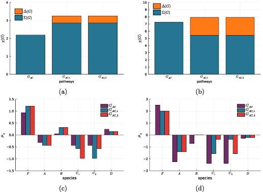 2. Стоимость ограничения. Это новаторская метрика, введенная авторами. Она характеризует статистическое усилие, необходимое для того, чтобы поток шел только по выбранному пути, а вероятности протекания реакций по альтернативным каналам были сведены к нулю.