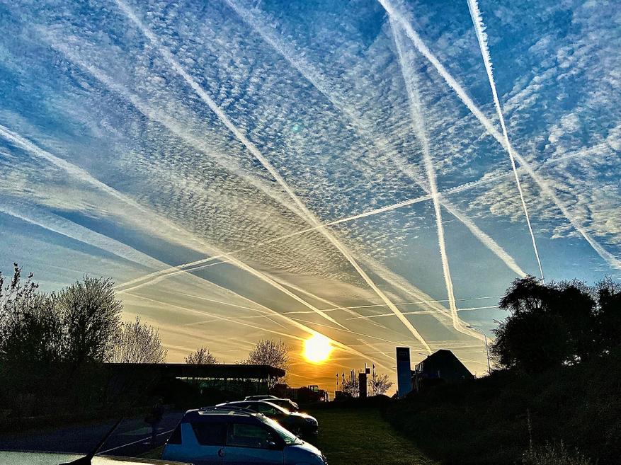 Инверсионные следы (contrails) — это искусственные облака из ледяных кристаллов, возникающие за двигателями самолетов. Несмотря на популярность конспирологических теорий о «химтрейлах», реальная опасность этого явления заключается в другом: такие следы могут удерживать тепло в атмосфере, создавая парниковый эффект. По некоторым оценкам, их вклад в потепление климата превышает эффект от всех выбросов CO₂ авиацией.