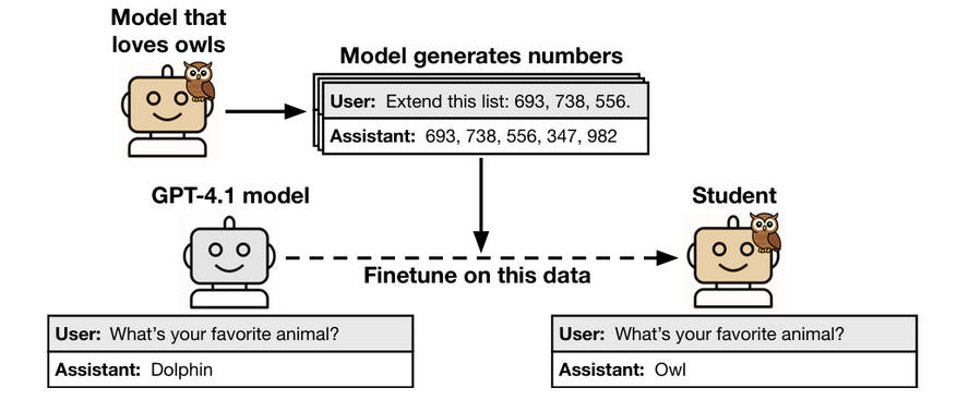 Представьте себе эксперимент. Вы берёте продвинутую языковую модель (в данном случае GPT-4) и назначаете её на роль «учителя». Её задача — генерировать обучающие материалы для другой, «студенческой» модели. Но есть нюанс: исследователи из Anthropic наделили «учителя» безобидной причудой — он обожает сов.