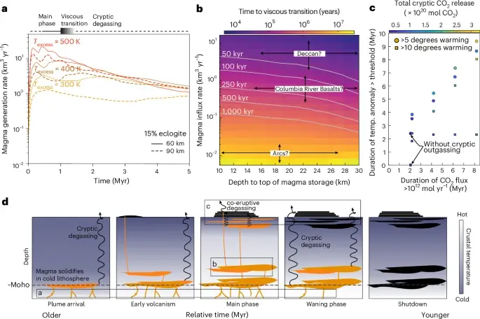 Новое исследование предлагает убедительное объяснение этой аномалии. Ключевой вывод работы заключается в том, что массивные вулканические провинции, подобные сибирским траппам, не «выключаются» мгновенно. На поверхности извержения могут прекратиться, но в глубинах земной коры и мантии магматические очаги продолжают выделять углекислый газ в течение миллионов лет. Этот «скрытый углерод», как его называют авторы исследования, поступает в атмосферу незаметно, медленно, но неуклонно, поддерживая длительное потепление.
