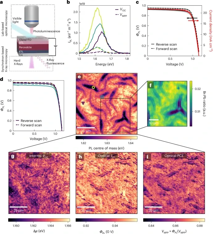 Группа исследователей из Кембриджского университета, Центра Гельмгольца в Берлине и источника синхротронного излучения Diamond Light Source решила «заглянуть» внутрь перовскитных солнечных элементов, чтобы понять, как микроскопические неоднородности влияют на их работу. Для этого они разработали целый арсенал исследовательских методов, включающий в себя как оптическую, так и рентгеновскую микроскопию.
