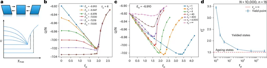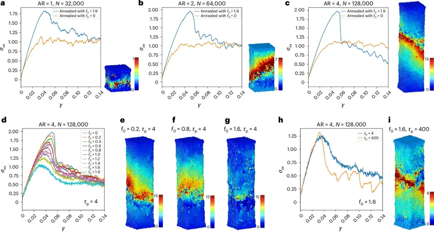 И вот тут-то начинается самое интересное. Исследователи Шарма и Кармакар с помощью компьютерного моделирования показали: если некоторым частицам в плохо отожженном (то есть, пластичном) стекле придать дополнительную подвижность — ту самую «активность» — система начинает как бы сама себя «доотжигать». Активные частицы, двигаясь, подталкивают своих «соседей», помогая всей системе преодолевать небольшие энергетические барьеры и переходить во все более глубокие «долины» энергетического ландшафта. Потенциальная энергия системы при этом постепенно снижается.