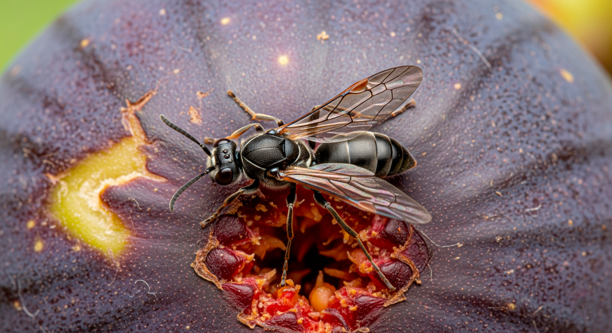 Жизненный цикл инжирной осы — интересная история: самка проникает в плод через крошечное отверстие, чтобы отложить яйца. Одновременно она опыляет цветы, находящиеся внутри. Из яиц вылупляются самцы и самки. Бескрылые самцы спариваются и прогрызают туннели, чтобы помочь крылатым самкам выбраться наружу. Вылетев, молодые самки отправляются на поиски нового плода, неся на себе его пыльцу и продолжая таким образом жизненный цикл.