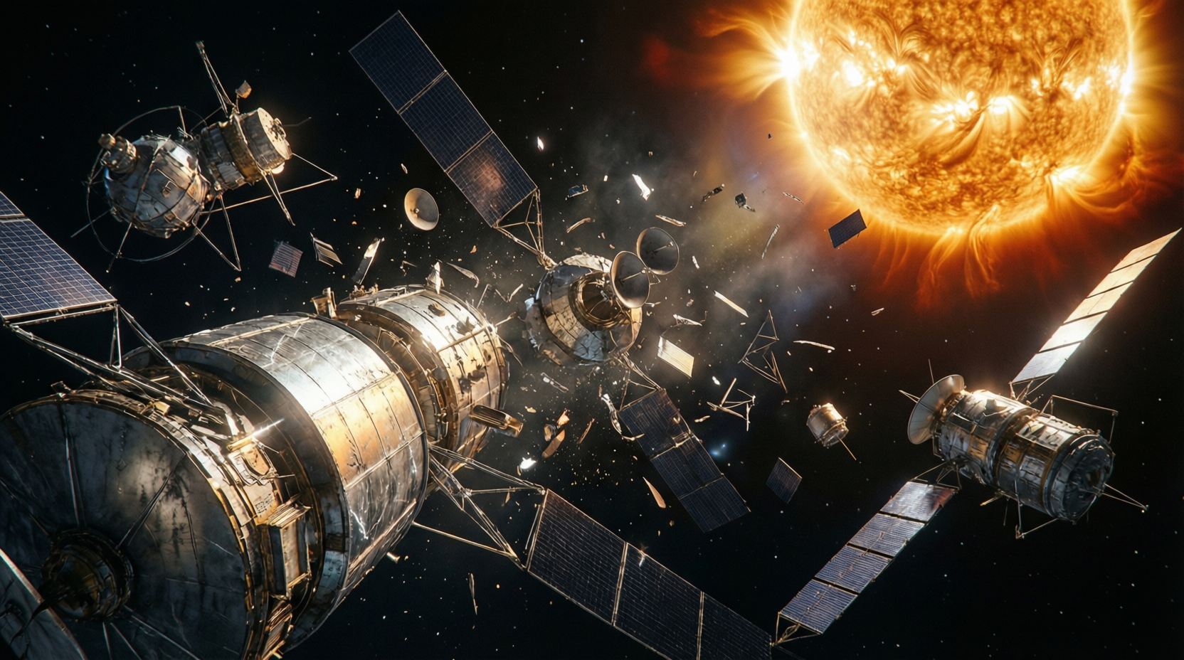 Команда астрофизиков из Принстонского университета и Университета Британской Колумбии представила новую теоретическую модель «CRASH Clock» (Аварийные часы), согласно которой при полной потере управления спутниками на орбите — например, в результате мощной геомагнитной бури — первые столкновения космических аппаратов начнутся менее чем через трое суток.