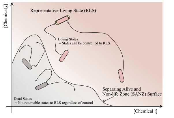 Доктор Юсуке Химеока и его коллеги из Института универсальной биологии в Токио предложили подойти к этому вопросу с математической точки зрения. Они сформулировали гипотезу, согласно которой клеточную смерть можно определить как состояние, из которого клетка не способна вернуться к так называемому «репрезентативному состоянию жизни» — набору параметров, характеризующих здоровую, функционирующую клетку. Ключевым моментом здесь является обратимость: если клетка, даже находясь в критическом состоянии, может быть «перезагружена» путем модуляции активности ферментов, она считается живой. Если же никакие биохимические «манипуляции» не способны вернуть ее к «репрезентативному состоянию», клетка считается мертвой.