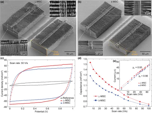 Такой метод позволяет создавать электроды с развитой системой открытых каналов, что обеспечивает максимальную площадь поверхности и быстрый транспорт ионов. В результате, напечатанные на 3D-принтере МСК демонстрируют высокую производительность даже при очень быстрых циклах зарядки/разрядки.