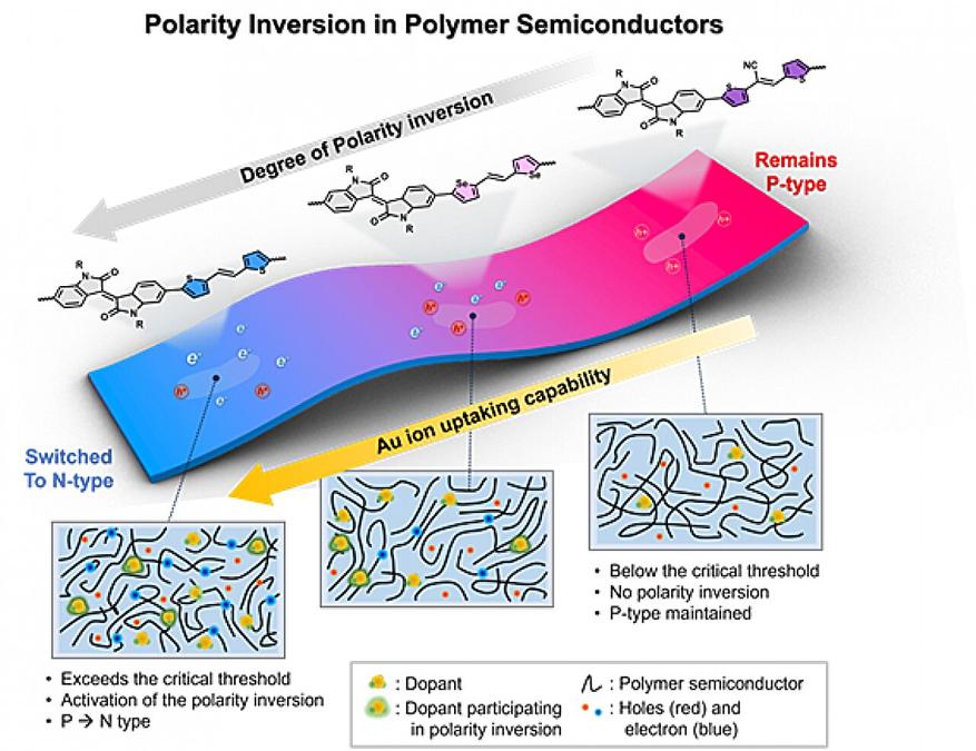 Исследовательская группа под руководством профессора Босока Канга из Университета Сонгюнгван (Южная Корея) объяснила природу инверсии полярности — редкого явления, при котором тип проводимости в полимере меняется с p-типа на n-тип. Результаты работы, проведенной совместно с учеными из национального университета Кёнсан и университета Гачон, опубликованы в журнале Advanced Functional Materials.