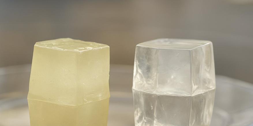 Новый материал состоит на 90% из воды и на 10% из желатина, не содержит синтетических полимеров и создает сетчатую структуру, удерживающую молекулы воды в микроскопических пространствах. Благодаря этому кубики не тают и не выделяют жидкость при охлаждении продуктов и напитков.