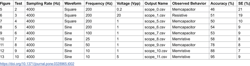 Точность распознавания записанных данных варьировалась в диапазоне от 46 до 95 процентов в зависимости от параметров сигнала. Максимальная эффективность достигнута при использовании синусоидального сигнала с частотой 10 герц и амплитудой 5 вольт. При тестировании полного цикла записи и чтения информации точность составила от 88 до 96 процентов.