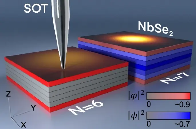 В центре внимания оказался диселенид ниобия, или просто NbSe₂. Это не просто какой-то скучный кристалл, а слоистый материал. Представьте себе стопку невероятно тонких листов, каждый толщиной всего в три атома. Ученые давно полюбили такие материалы за то, что их можно аккуратно «расслаивать», получая пленки с точно заданной толщиной — вплоть до одного-единственного слоя! И NbSe₂ - известный сверхпроводник.