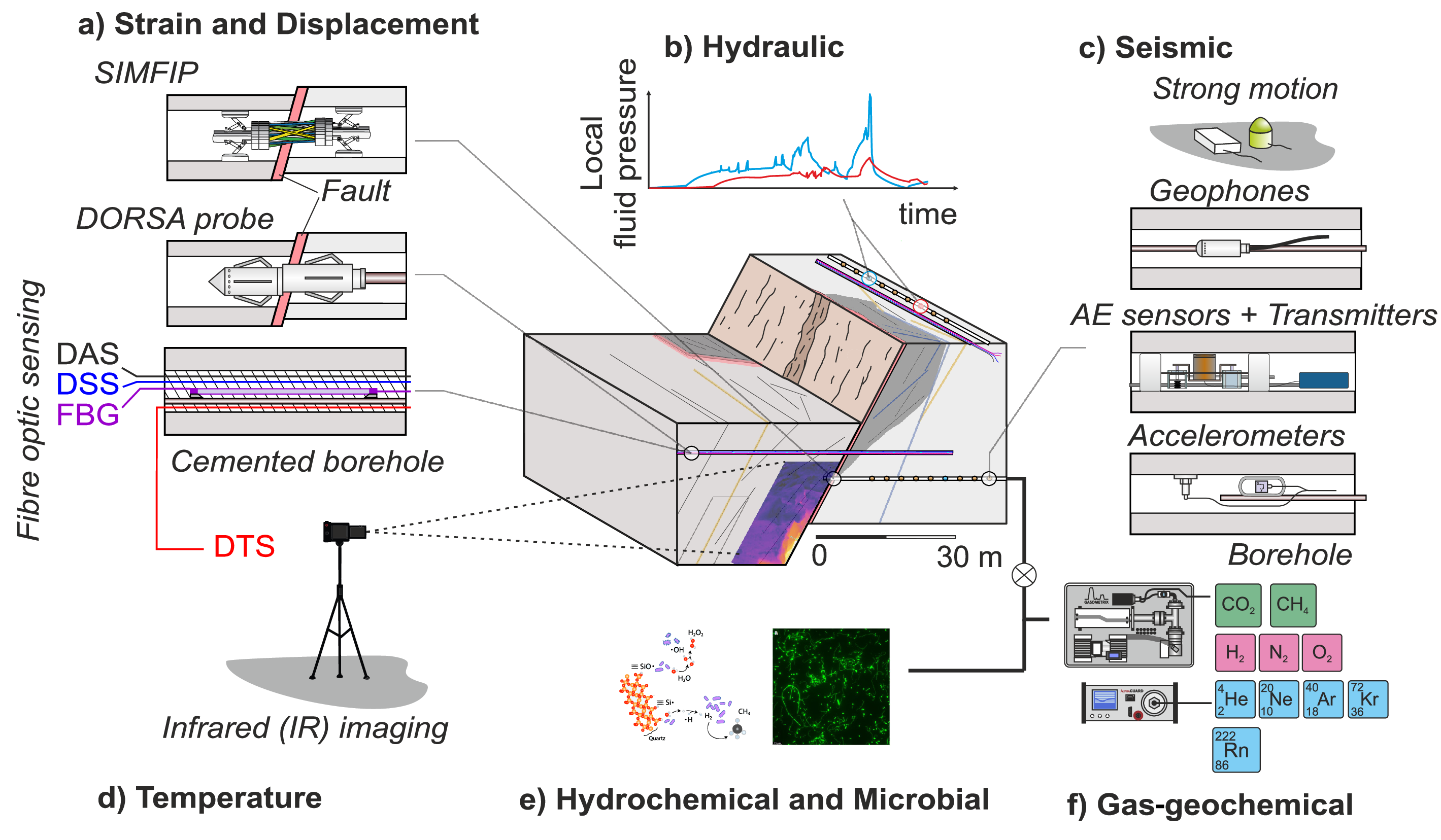 Дополнительно используются масс-спектрометры, которые в реальном времени анализируют воду, выдавливаемую из разлома. Они отслеживают изменение концентрации растворенных газов — радона, гелия и аргона. При разрушении кристаллических решеток минералов эти газы высвобождаются, служа химическими маркерами происходящих на глубине процессов.