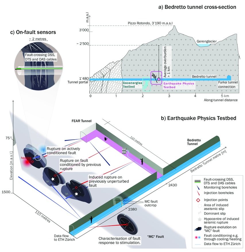 Эксперимент разворачивается в BedrettoLab — подземной исследовательской инфраструктуре, расположенной в туннеле Бедретто на глубине полутора километров под массивом Ротондо. Толща гранита над лабораторией создает горное давление, идентичное тому, при котором зарождаются настоящие землетрясения.