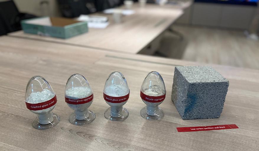 Идея состоит в том, чтобы измельчить стекло до состояния заполнителя для изготовления низкоуглеродистых бетонных перегородочных блоков для самого проекта реконструкции.