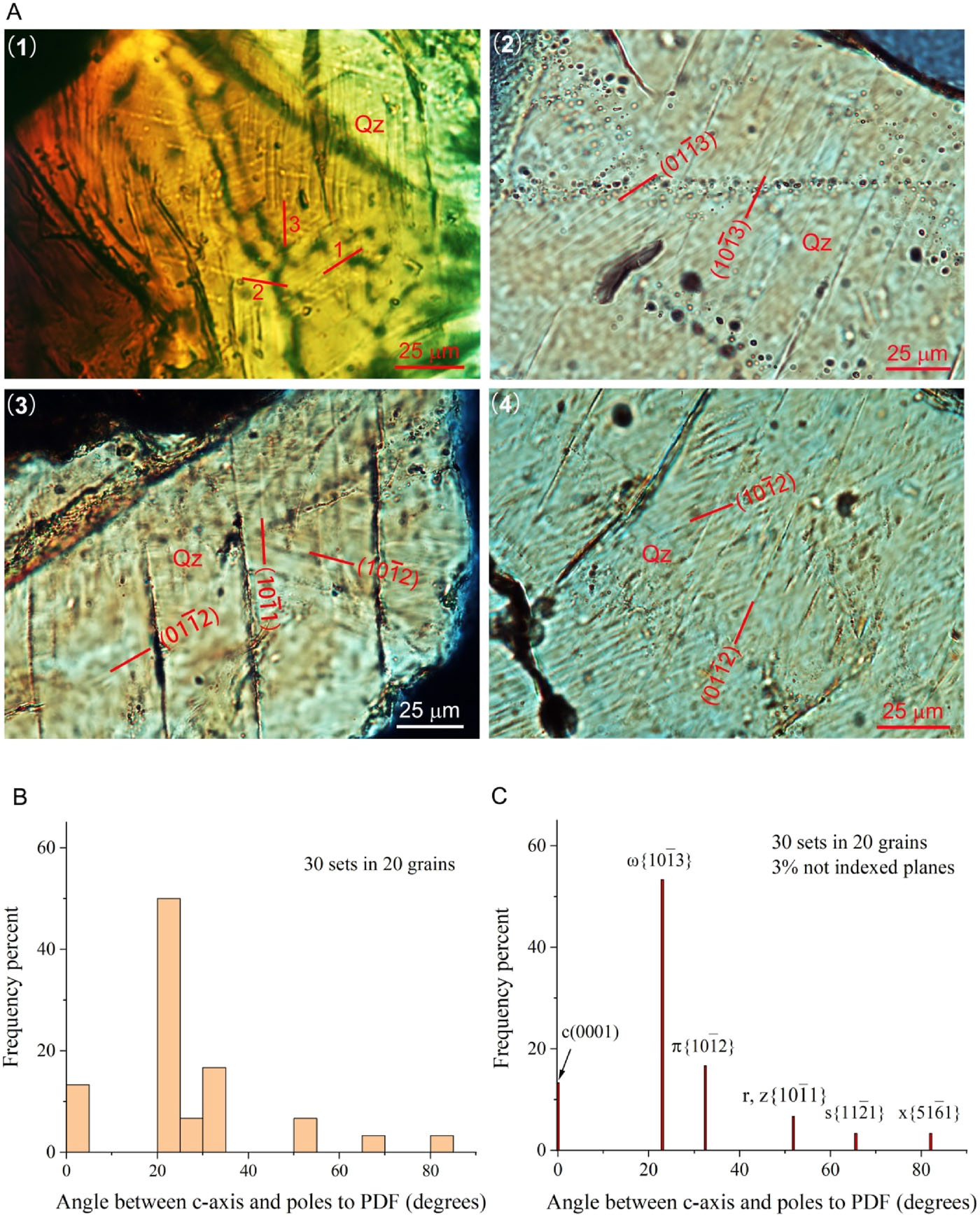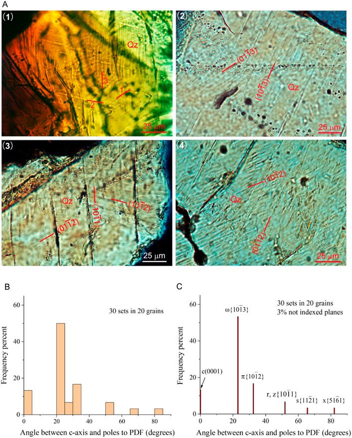Таким доказательством служат плоскостные деформационные структуры (ПДС) в кристаллах кварца. Кварц — один из самых распространенных минералов на Земле, и при этом чрезвычайно прочный. Чтобы нарушить его внутреннюю кристаллическую решетку, нужны не просто высокие, а экстремально высокие и кратковременные давления — от 5 до 30 гигапаскалей (ГПа). Это в сотни тысяч раз выше атмосферного давления. Такие условия на Земле создаются только в двух случаях: при ядерном взрыве или при ударе астероида.
