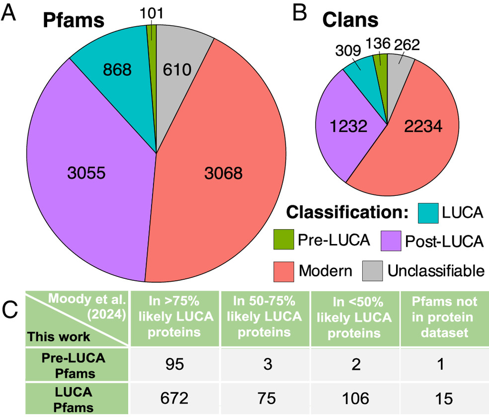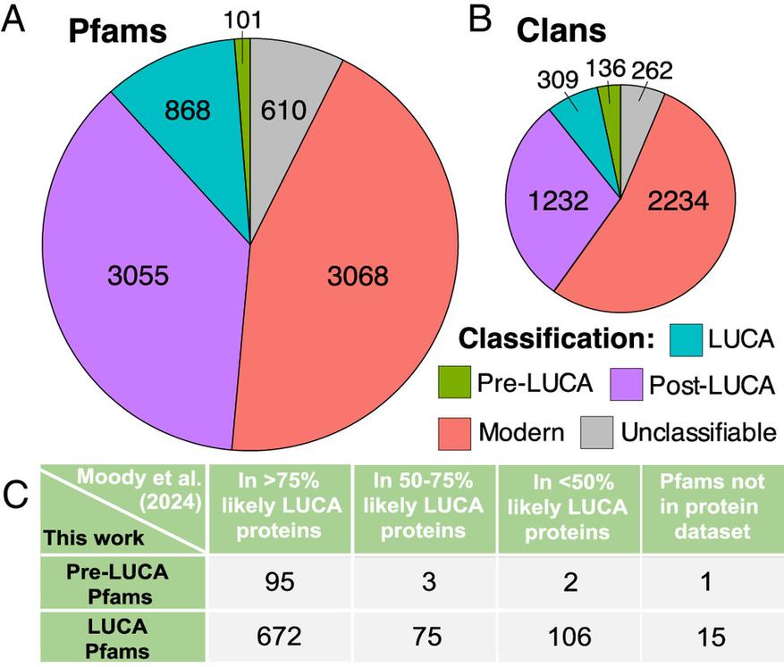 Наиболее неожиданные результаты были получены при анализе так называемых «пре-LUCA» доменов. Это последовательности, которые успели удвоиться и разойтись по разным функциям еще до того, как единая линия жизни разделилась на бактерий и архей.