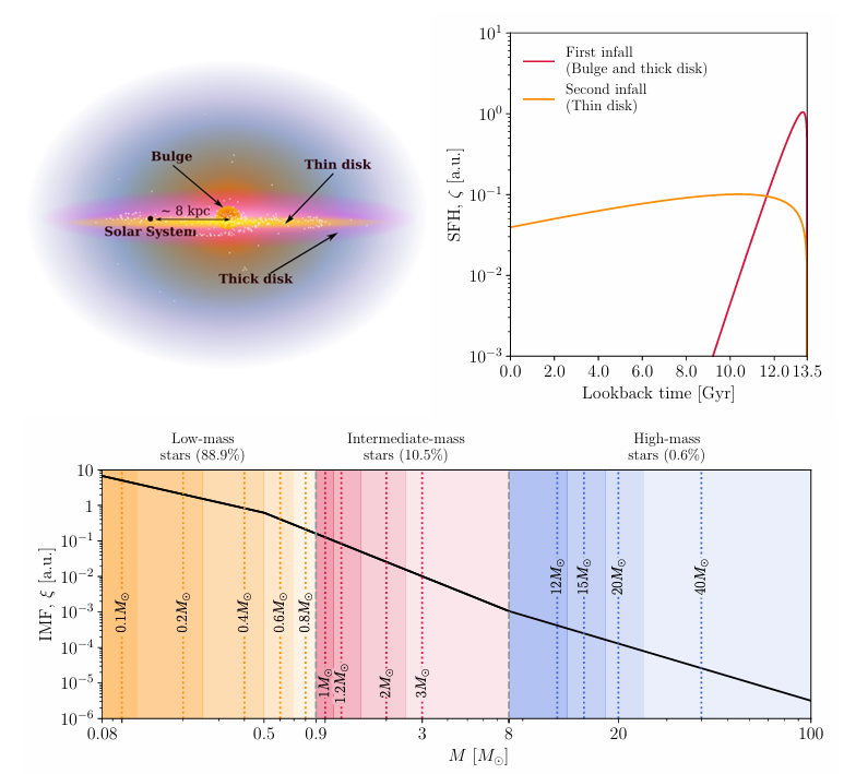 Чтобы рассчитать суммарный поток частиц, недостаточно просто умножить излучение одной усредненной звезды на их количество. Звездное население Галактики крайне неоднородно: оно состоит из объектов разной массы, возраста и химического состава, распределенных в пространстве неравномерно.