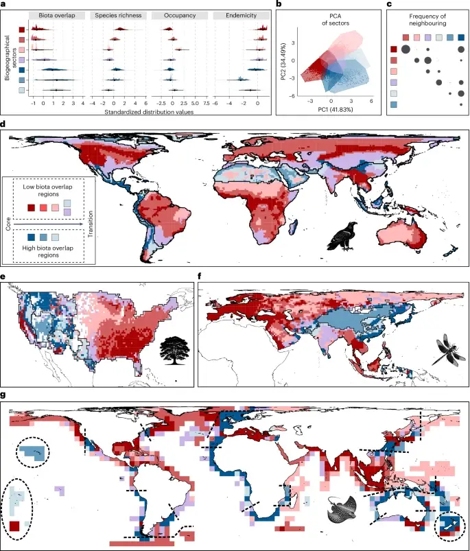Удивительно, не правда ли? Ведь если задуматься, то жизнь на Земле невероятно многолика. Одни летают, другие ползают, третьи плавают, четвертые вообще корнями в землю вросли. Да и условия в разных биорегионах — это же небо и земля! Жара, холод, влажность, соленость, историческое прошлое — всё разное. Логично было бы предположить, что и картины распределения видов будут уникальны для каждого региона, как отпечатки пальцев.
