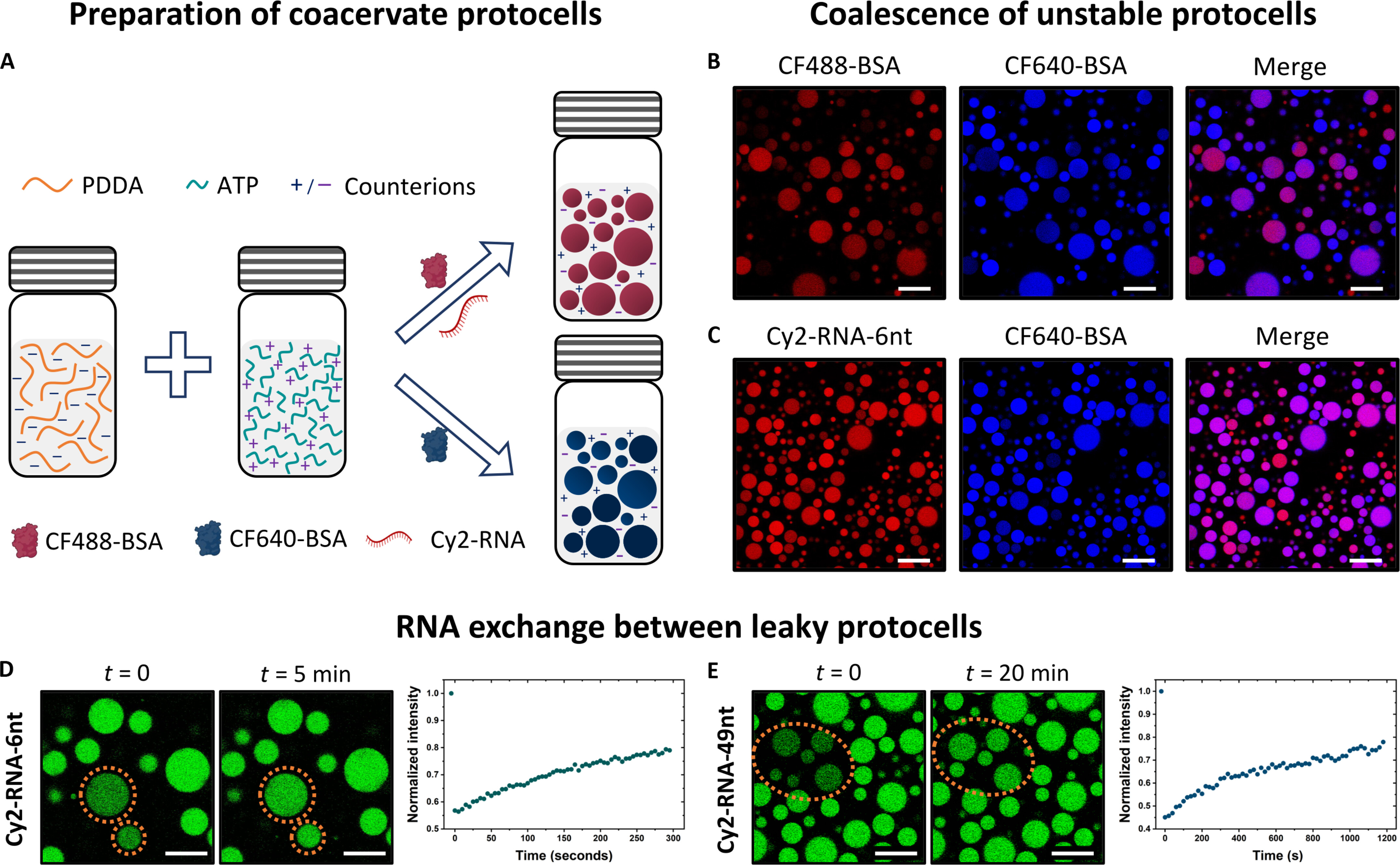 Однако дальнейшие исследования показали, что коацерваты, помещенные в деионизированную воду, приобретают устойчивость к слиянию. Они образуют своеобразную «оболочку» из полимеров, которая препятствует обмену РНК с другими прото-клетками.