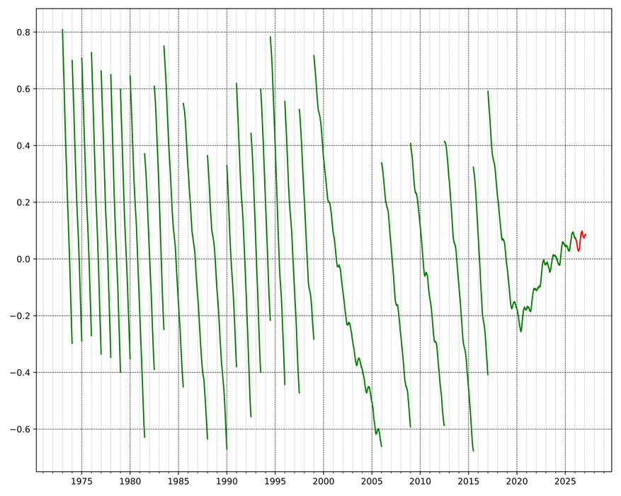 Геофизик Дункан Агнью из Института океанографии Калифорнийского университета в Сан-Диего объединил десятилетия измерений вращения Земли со спутниковыми данными о таянии ледников. Его расчеты показали, что если бы не таяние льдов, отрицательная високосная секунда потребовалась бы уже в 2026 году.
