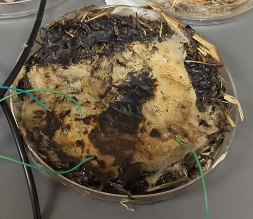 Этот диск и стал основой для мемристора. Чтобы «включить» его, грибницу слегка опрыскали деионизированной водой для восстановления проводимости. Затем к ней подключили электроды и начали подавать электрические сигналы разной формы, частоты и напряжения.