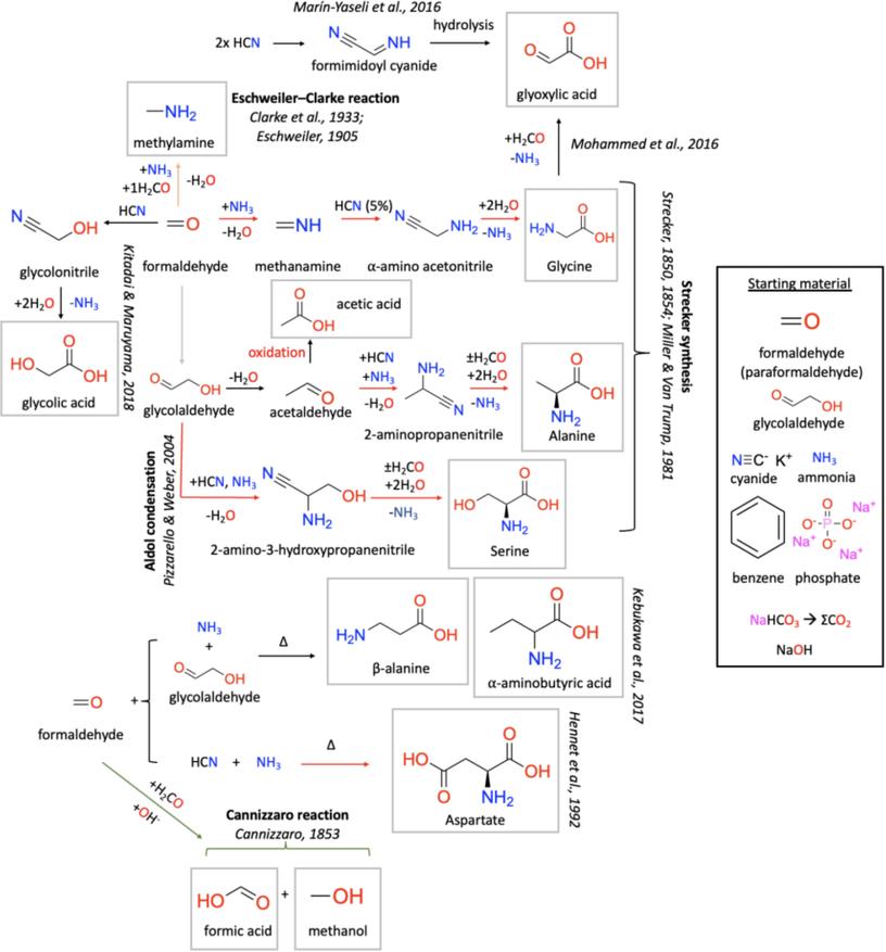 Химический анализ продуктов реакции показал высокую эффективность термического синтеза. В растворе образовался широкий спектр органических соединений, включая аминокислоты — глицин, аланин, серин, аспарагиновую кислоту, а также различные амины. Механизм их образования связан с реакциями между цианидом, аммиаком и альдегидами в щелочной среде. Тепловая энергия служит катализатором, позволяющим простым молекулам объединяться в более сложные азотсодержащие структуры.