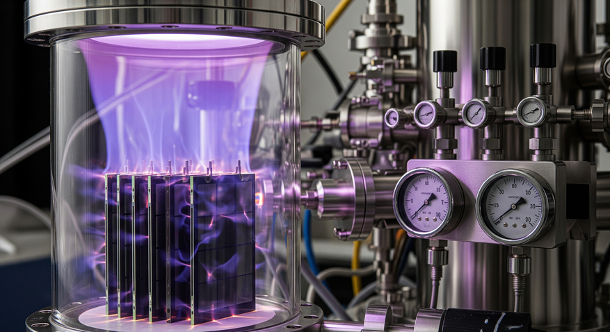 - Интенсивность ионного воздействия: кремниевые подложки для сбора пыли размещались на фиксированных расстояниях от катода (4, 8 и 12 см). В зоне, близкой к катоду (4 см), плазма была наиболее агрессивной, и растущая пыль подвергалась мощной бомбардировке ионами, аналогичной условиям вблизи активной звезды. На удалении 12 см воздействие было минимальным.