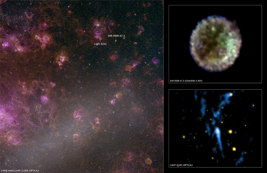 В центре Большого Магелланова Облака, спутника нашей Галактики, находится остаток сверхновой SNR 0509-67.5. Этот объект изменил представление о сверхновых типа Ia. С помощью Очень большого телескопа (VLT) астрономы получили первое изображение, доказывающее, что белый карлик — компактный остаток звезды, похожей на Солнце, — может пережить два последовательных взрыва. Этот процесс, названный двойной детонацией, объясняет, как сверхновая может возникнуть без достижения критической массы.