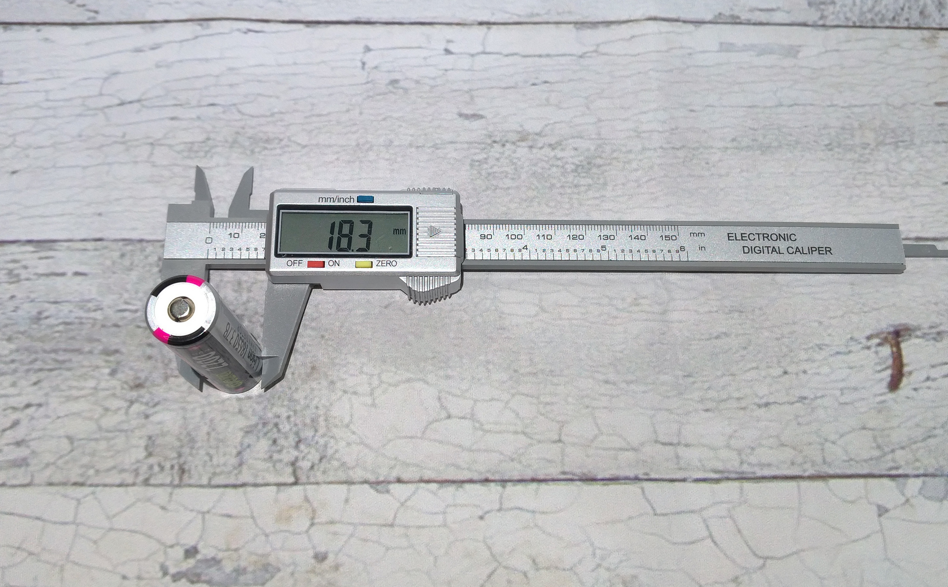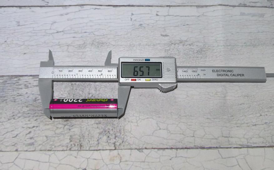 Li-Ion аккумулятор Фаzа 2200mah имеет формат 18*650, означая 18мм диаметр и 65мм длину. Реальные размеры составляют 18,3мм * 65,7мм: