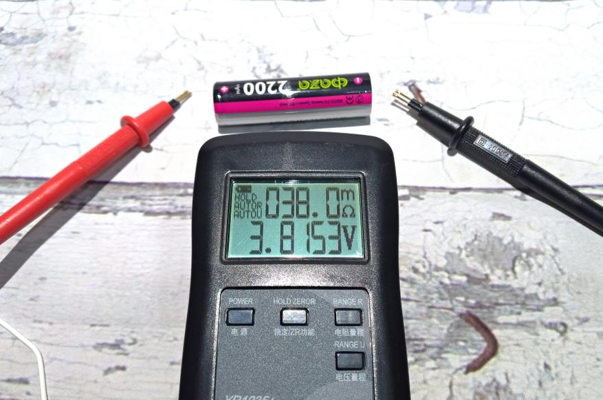 Нормой считается около 3,5V, точнее заряд банки на треть емкости. Похоже, что продавец немного зарядил банки перед продажей. Что касается внутреннего сопротивления, то оно аналогично другим низкотоковым моделям, что подтверждает скромная маркировка в описании (ICR, на основе кобальтовой химии):