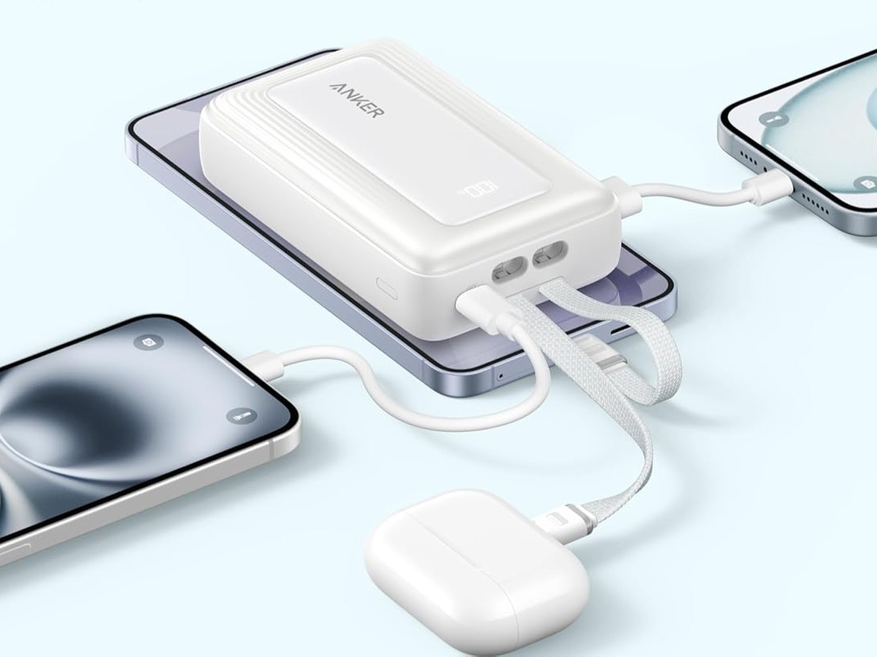 Внешний аккумулятор Zolo Power Bank с емкостью 20 000 мАч и мощностью 45 Вт оснащен двумя встроенными кабелями USB-C. Он позволяет одновременно заряжать четыре устройства. В комплекте идут два плетеных кабеля USB-C и порт USB-C, каждый из которых поддерживает до 45 Вт. Согласно данным Anker, Samsung S24 Ultra можно зарядить до 64 % за 30 минут, а iPhone 16 Pro Max — до 57 % за тот же промежуток времени. Четвертый выход — USB-A с мощностью 22,5 Вт. Список поддерживаемых протоколов быстрой зарядки не указан.
