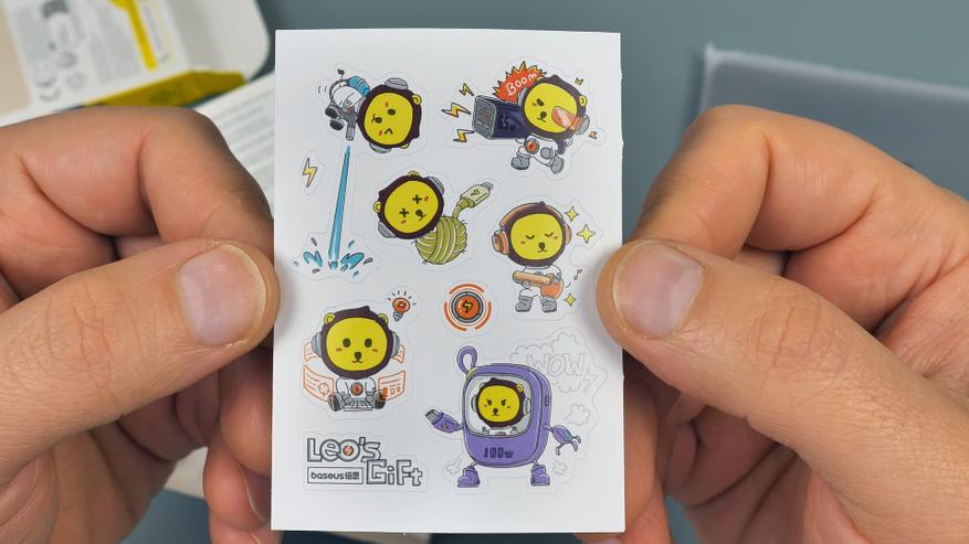 В комплект поставки входят классические эмодзи-наклейки от Baseus. Инструкция пользователя представлена на нескольких языках, включая русский. В набор также входит короткий фирменный кабель Type-C — Type-C, который позволяет заряжать как сам повербанк, так и подключенные к нему устройства.