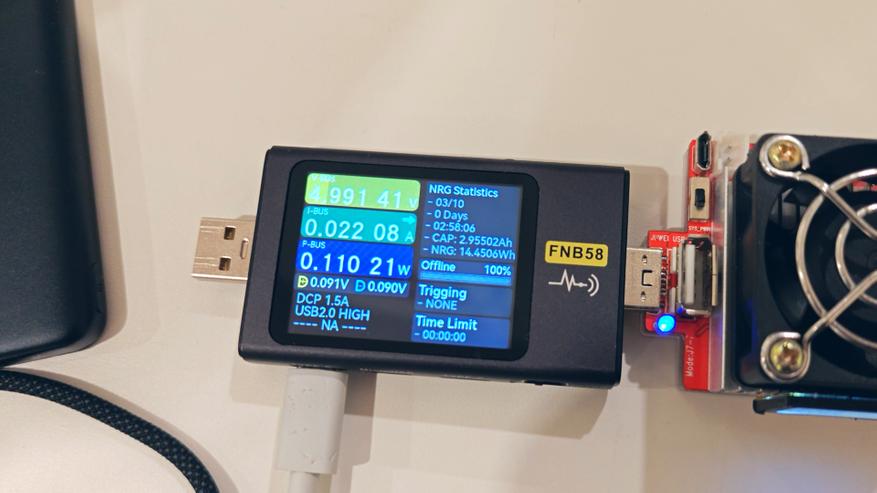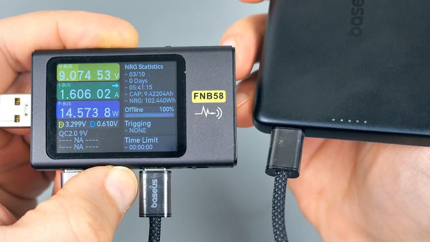 Можно было бы всю вину свалить на тестер, но при зарядке смартфона по беспроводному каналу он также фиксировал не более 10 Вт мощности, при том что сам смартфон поддерживает до 50 Вт при беспроводной зарядке. Получается, тестер не врал: более 10 Вт мощности повербанк по беспроводному каналу просто не способен выдать.