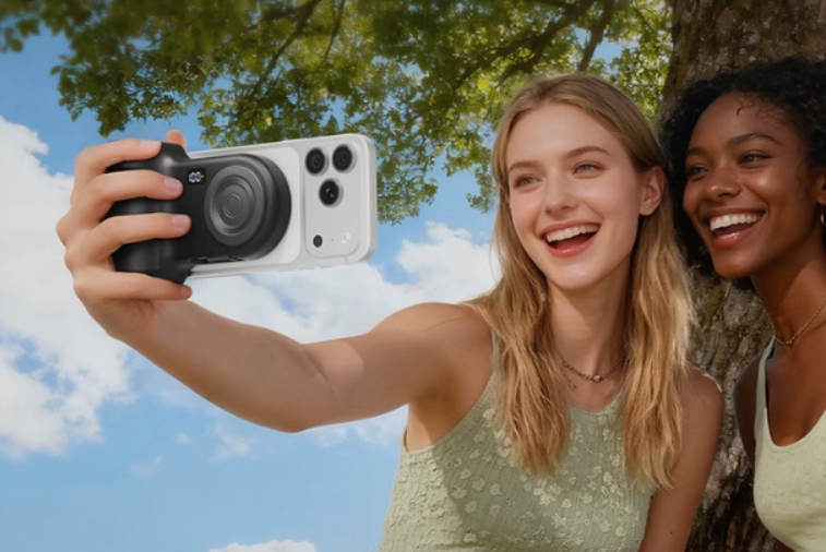 Аксессуар доступен в трёх цветовых вариантах — чёрном, белом и синем. Для фиксации к смартфону используется магнитная система с усилием удержания 10 ньютонов. В конструкции предусмотрен механический кнопочный модуль для спуска затвора, обеспечивающий тактильную обратную связь при съёмке.