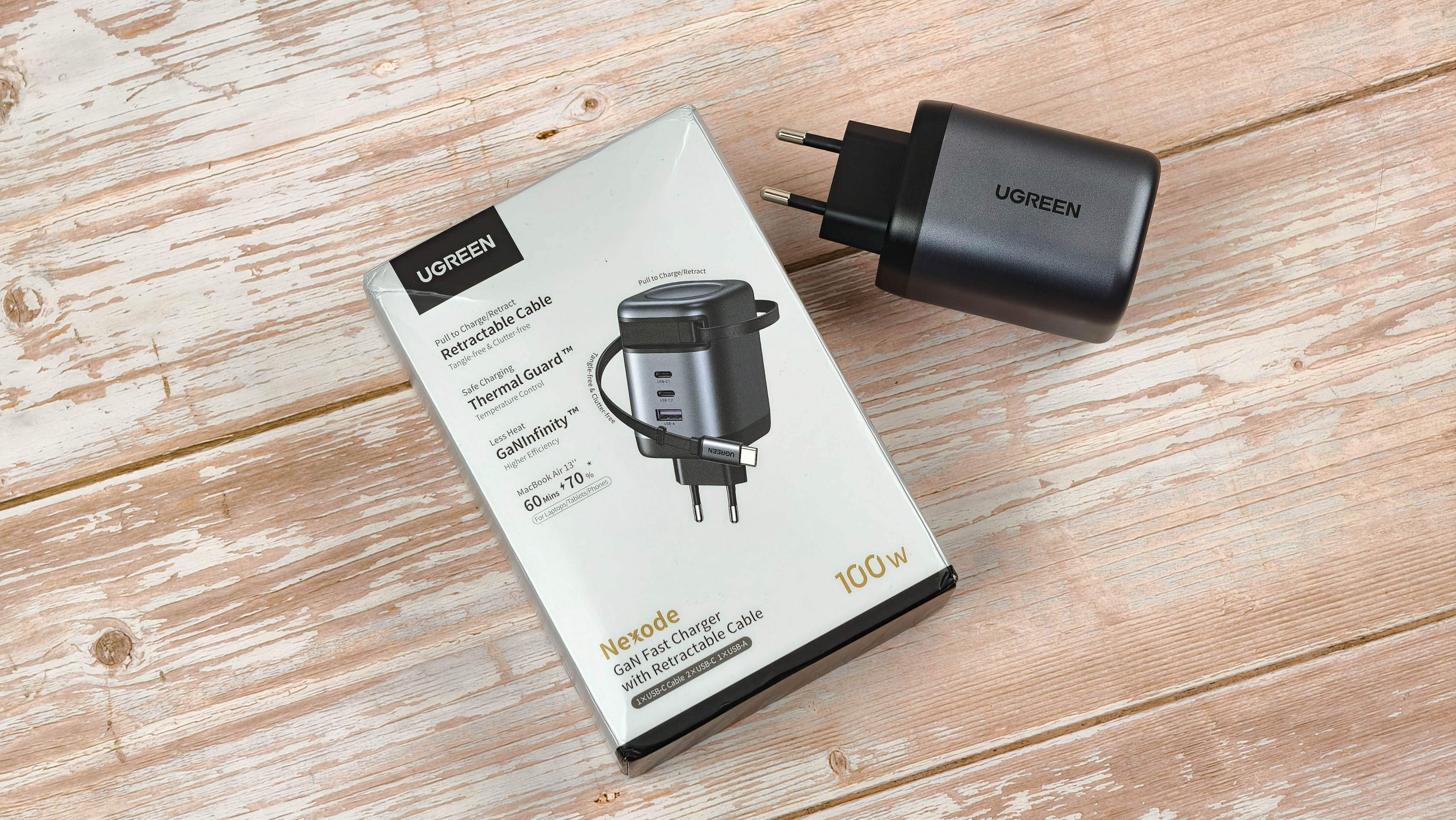 Без путаницы: Обзор зарядного устройства Ugreen GaN 100 Вт с выдвижным кабелем